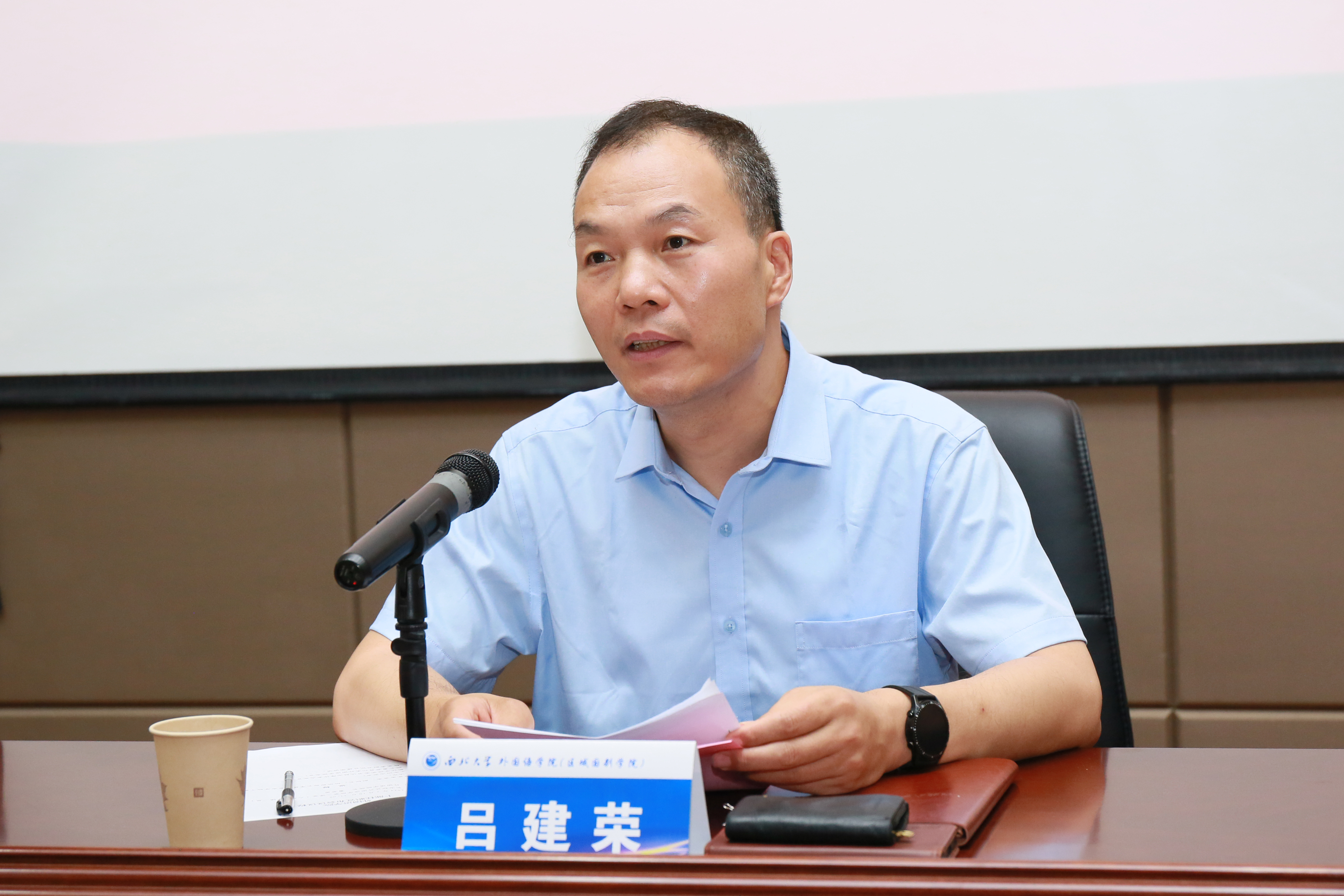 吕建荣讲话中对外国语学院近年来取得的成绩表示了肯定,对王军同志在学院任职期间的工作给予了充分肯定和高度评价,对赵志厚同志的到任提出了殷切期望,并希望学院班子成员和全体教职员工要继续保持和发扬优良传统,争取新的更大的成绩。他对学院的工作提出了三点要求:一是要精诚团结,持续提升学院的凝聚力和战斗力,尤其党政主要负责人要搞好团结,团结出凝聚力,团结出战斗力;二是要不断创新,提高教学质量,努力构建有利于学生全面发展,个性发挥和创新能力培养的人才培养模式,积极探索与国家社会和区域经济社会发展需求相适应的人才培养新途径、新方法;三是要严守规矩,坚持依法依规治院,学院领导班子严格执行廉政纪律,切实把党规党纪内在要求转化为遵规守纪的行为自觉,以清风廉洁的班子形象,积极向上的工作氛围,保障学院发展再创新高。希望学院全体教职员工发扬主人翁精神,积极参与学院的发展建设,支持学院班子开展工作,共同把外国语学院的发展建设推向新的高度。